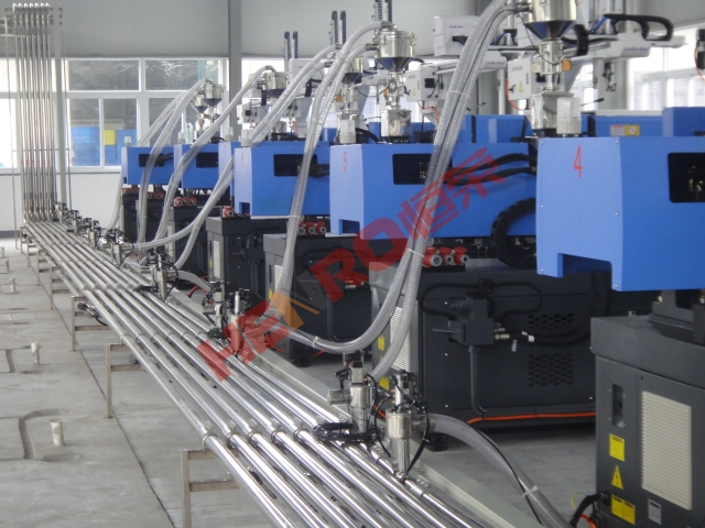 4. 可實(shí)現(xiàn)將多種原料自動(dòng)供給多室任意的注塑加工設(shè)備使用,在這其中可包括原料的干燥處理、配色處理以及按比例的粉碎回收料利用,能夠?qū)嵭懈叨鹊淖詣?dòng)化控制、監(jiān)測(cè)等,并能滿足注塑車間24小時(shí)不停機(jī)的生產(chǎn)需要。